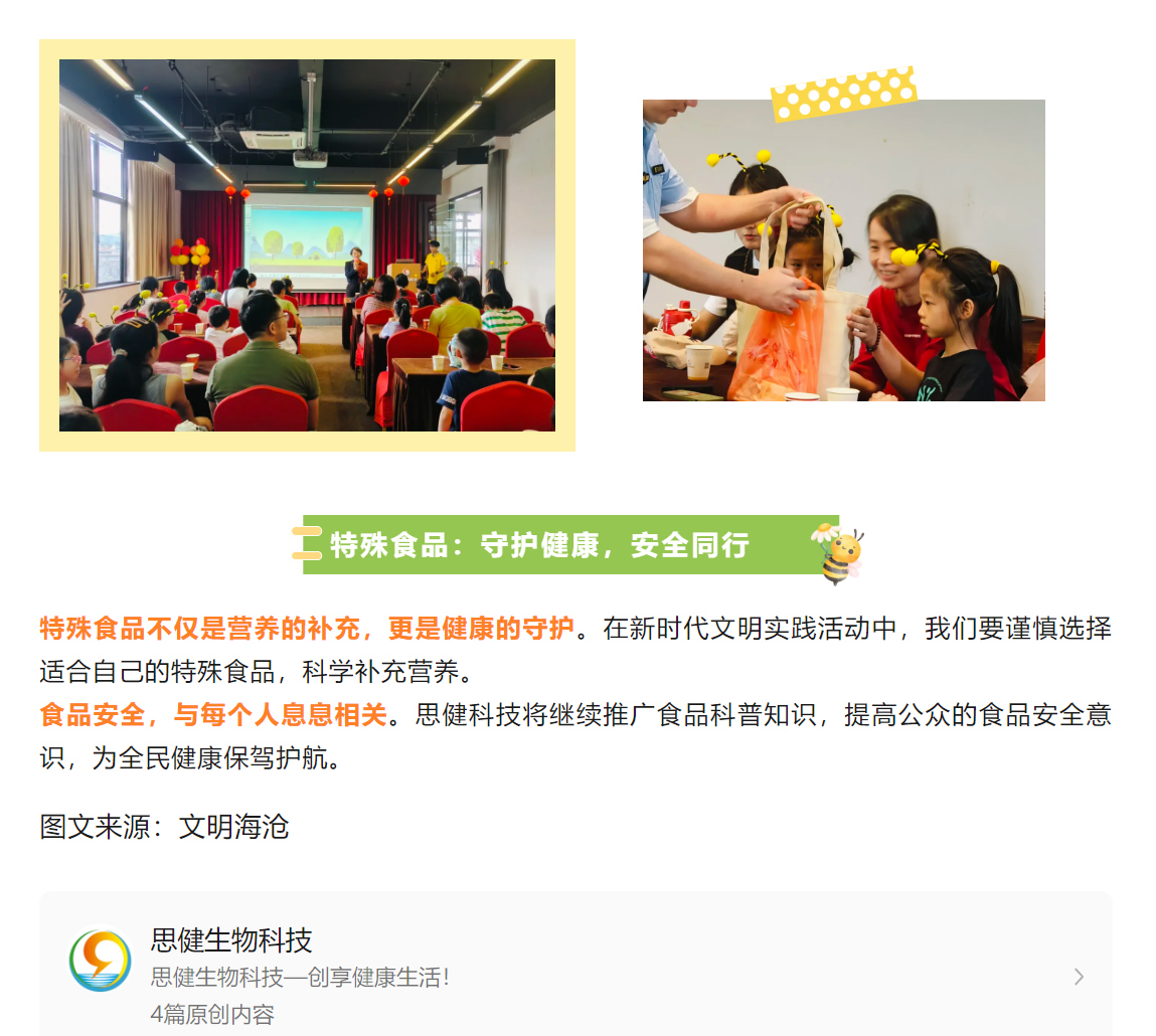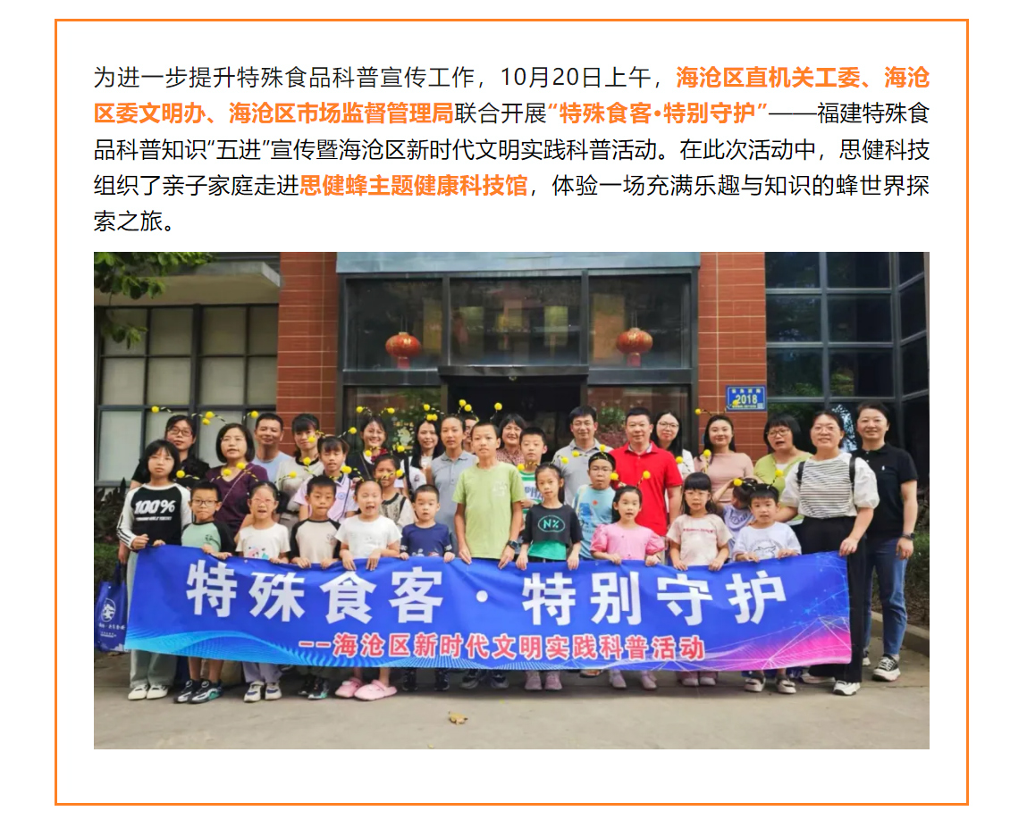特殊食品知多少?這場活動(dòng)甜蜜又有料….福建特殊食品科普知識“五進(jìn)”宣傳暨海滄區(qū)新時(shí)代文明實(shí)踐科普活動(dòng)走進(jìn)思健蜂主題科技館